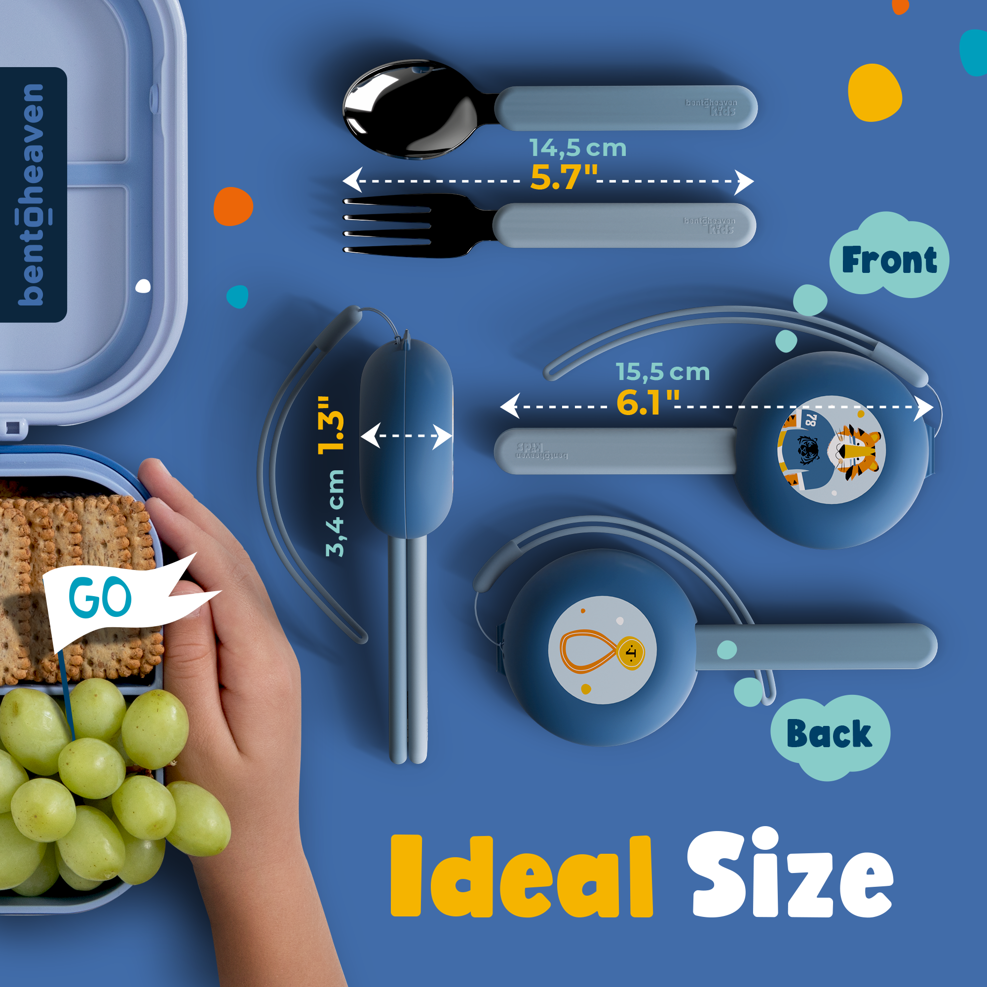 The star of the show is the smart travel case. It snaps shut to keep the utensils perfectly clean in a crowded lunch bag. After lunch, it locks away sticky messes, keeping the bag clean for the journey home. Plus, the durable silicone loop makes it easy to buckle onto a backpack or lunch bag, so it never gets left behind.
