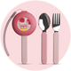 We created this set to empower independent eaters. The fork and spoon feature premium stainless steel heads and smoothly finished, BPA-free plastic handles that are perfectly weighted and sized for small hands to hold comfortably and safely.