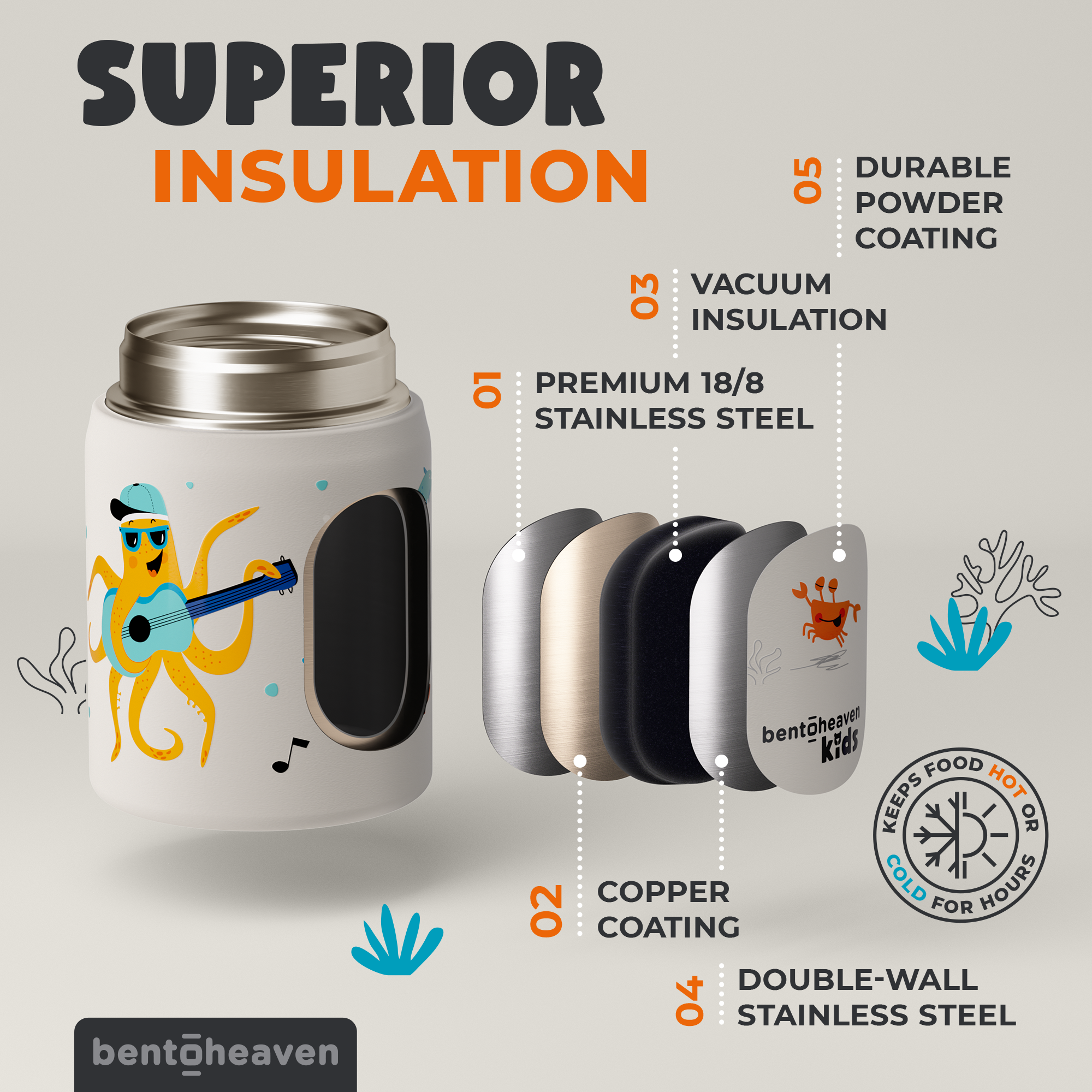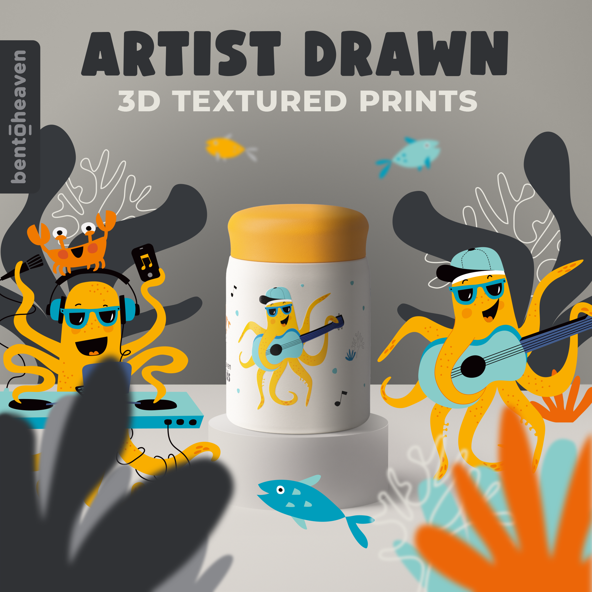 Lunchtime should be fun! That's why our food jars feature vibrant, artist-drawn characters with a unique 3D texture. It’s a fun and stylish look that perfectly matches their Bentoheaven water bottle and lunch bag.
