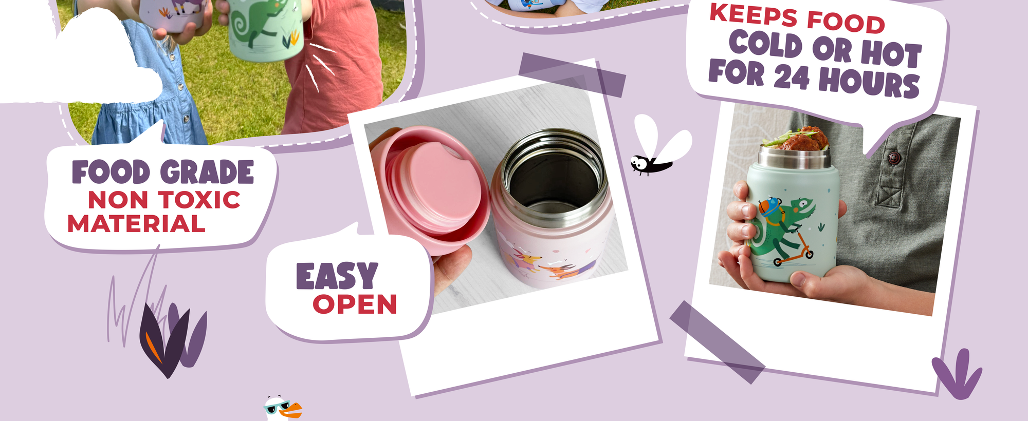 Lunchtime should be fun! That's why our food jars feature vibrant, artist-drawn characters with a unique 3D texture. It’s a fun and stylish look that perfectly matches their Bentoheaven water bottle and lunch bag.